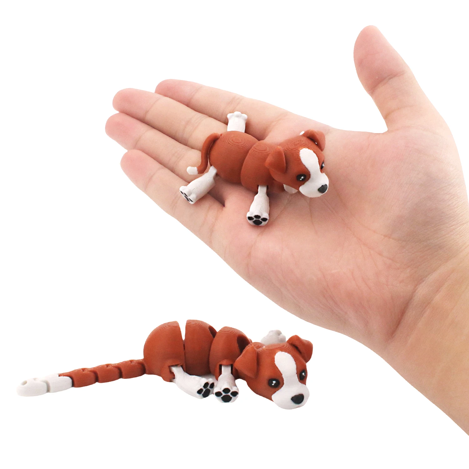 3D printed dog model, flexible animal toy statue, movable joints, home office decoration