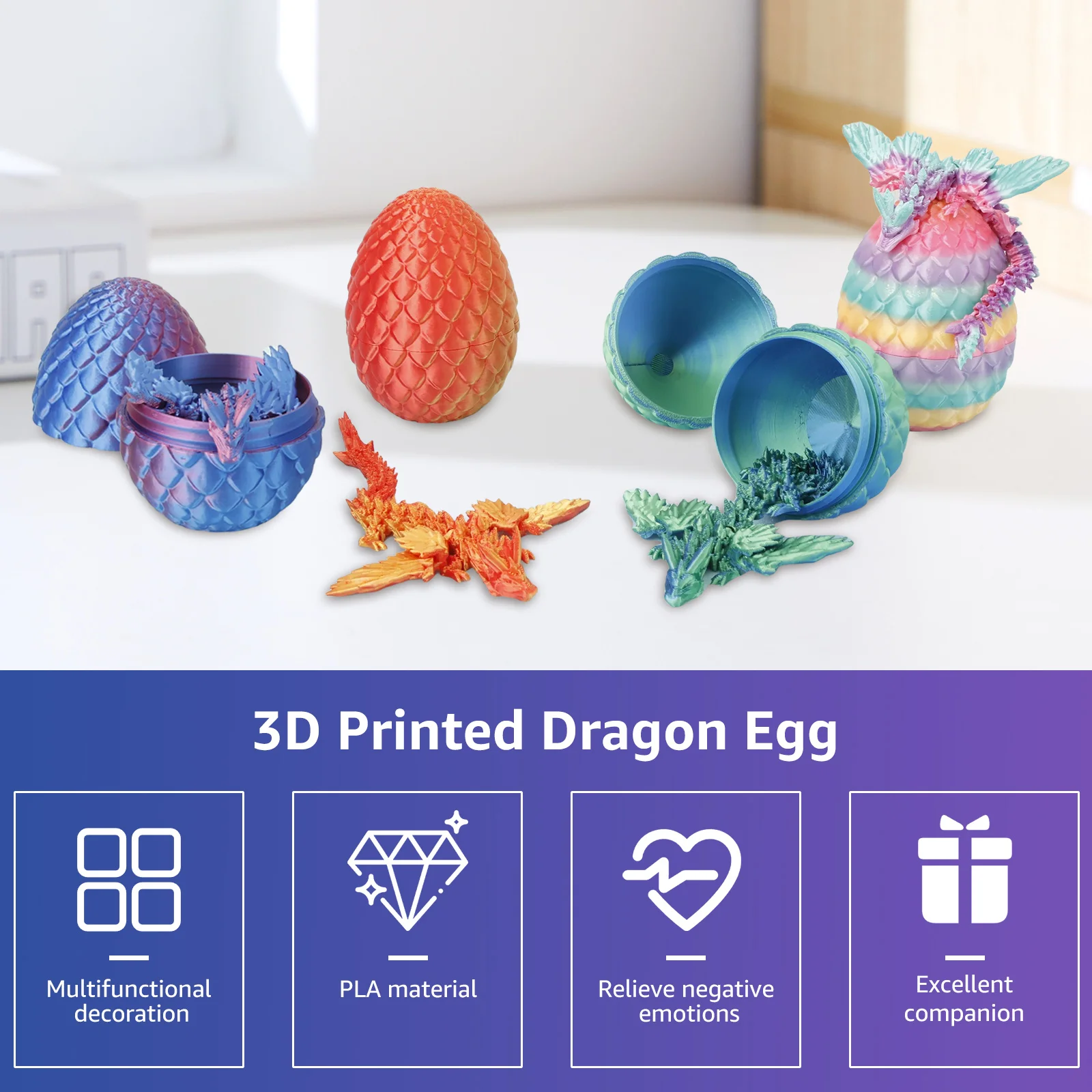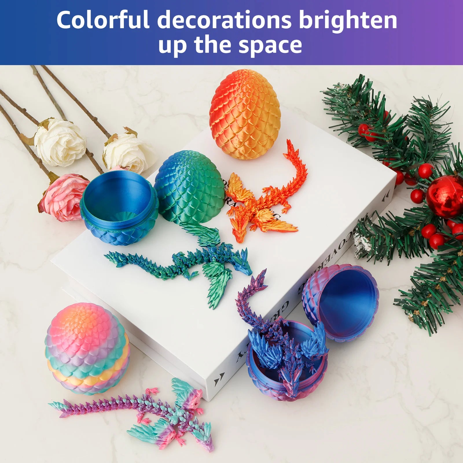 3D Printed Dragon Egg with Dragon Full Articulated Dragon Modle Movable Rotatable Articulated Desktop Ornament Kid Toy