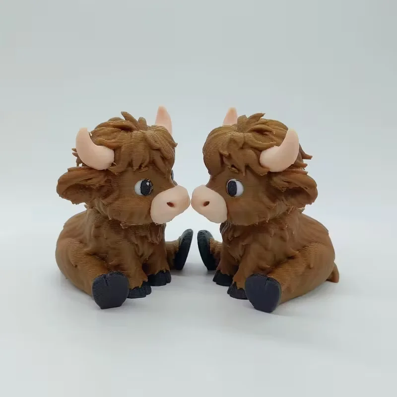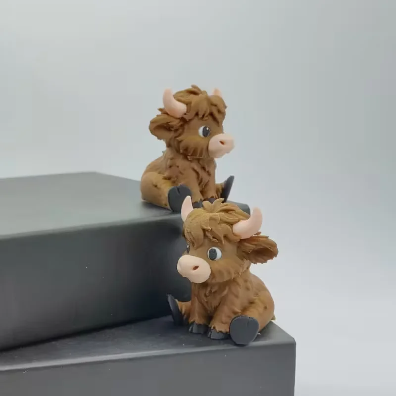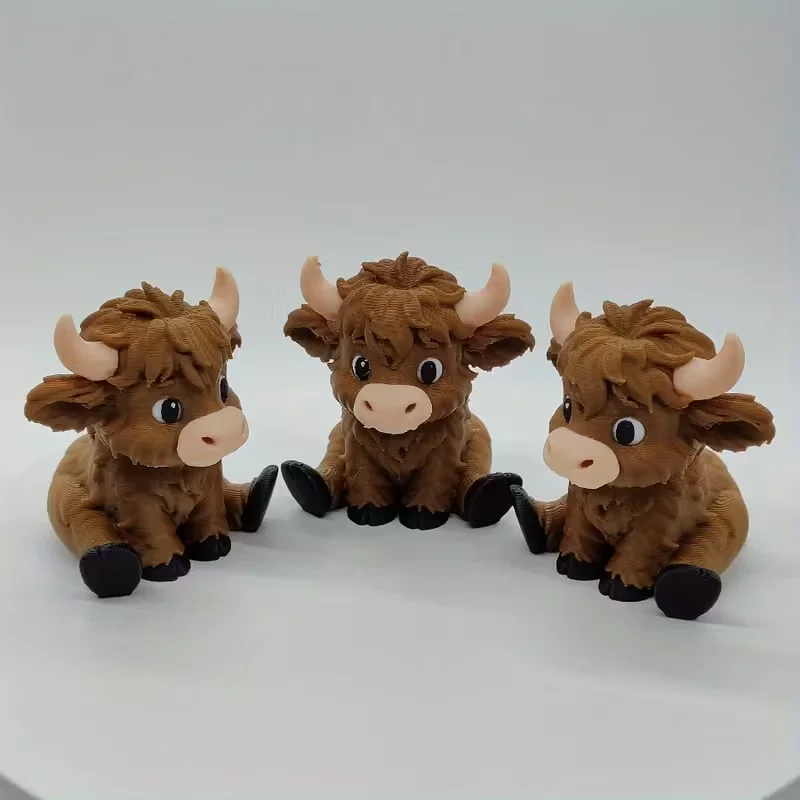 3D Printed Seated Highland Cow Adorable Desk Pet for Office Cuteness Farmhouse Aesthetic Charming Decor for Birthdays Farm Decor