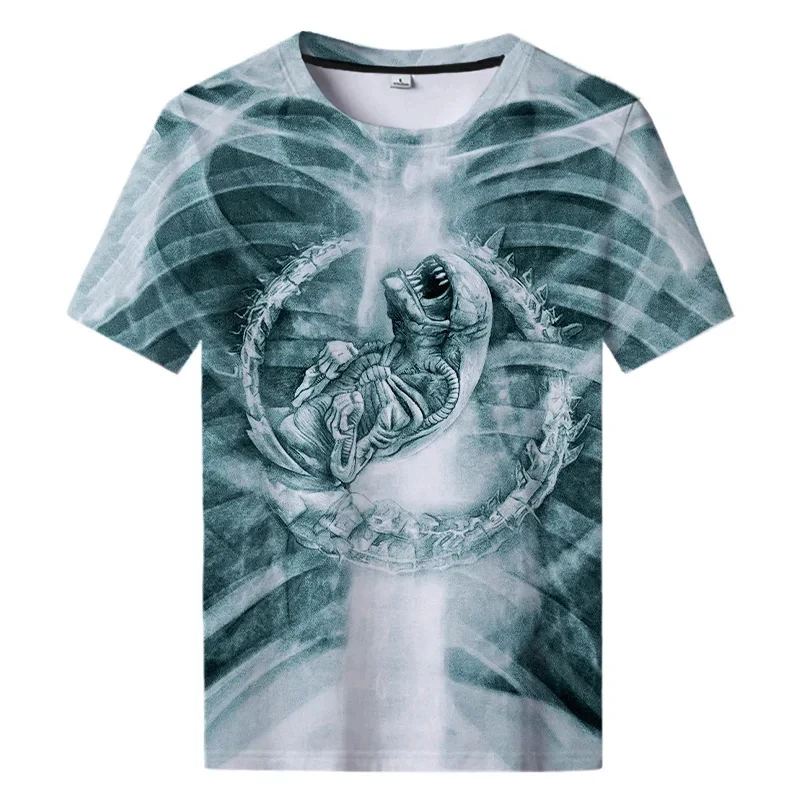 3D Printed T Shirt Alien Pattrn For Men Summer Casual Retro Trendy Men's Clothing Horror Movie Graphic Round Neck Gothic Tops