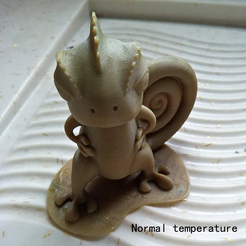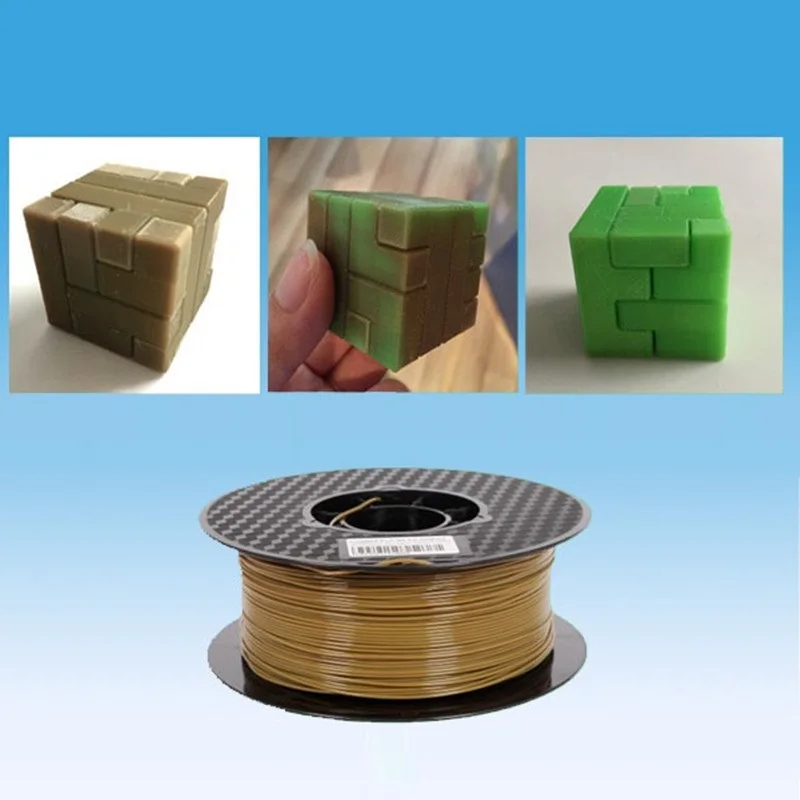 B. PLA Temperature Change Color is a material will change color from one color to another color when exposed to a temperature of 33°C or higher. Even holding the part in your hand for a few moments will be enough to start the color transformation. Once the parts cools back down to room temperature, the color will go back to the original color.