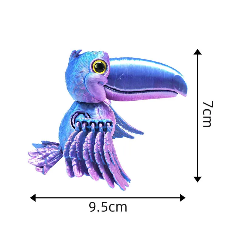 3D Printing Open-billed Parrot Toy Creative Fun Wings Fully Joints Movable Toy Model Simulation Bird Desktop Ornaments Gift
