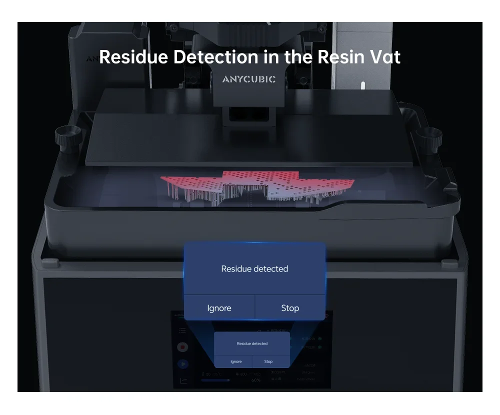 Detect solid residues inside the resin vat and promptly alert the user with a pop-up window to avoid damage to the screen due to manual inspection oversights.