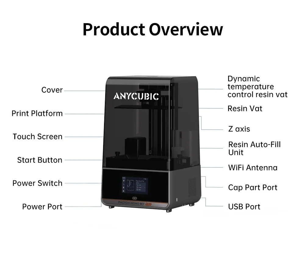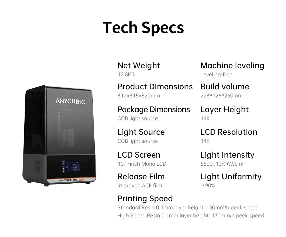 ANYCUBIC Photon Mono M7 Pro 3D Printer 10.1'' LCD Resin 14K Mono MSLA 3D Printer Speed Up to 170mm/h Printing Size 223*126*230mm