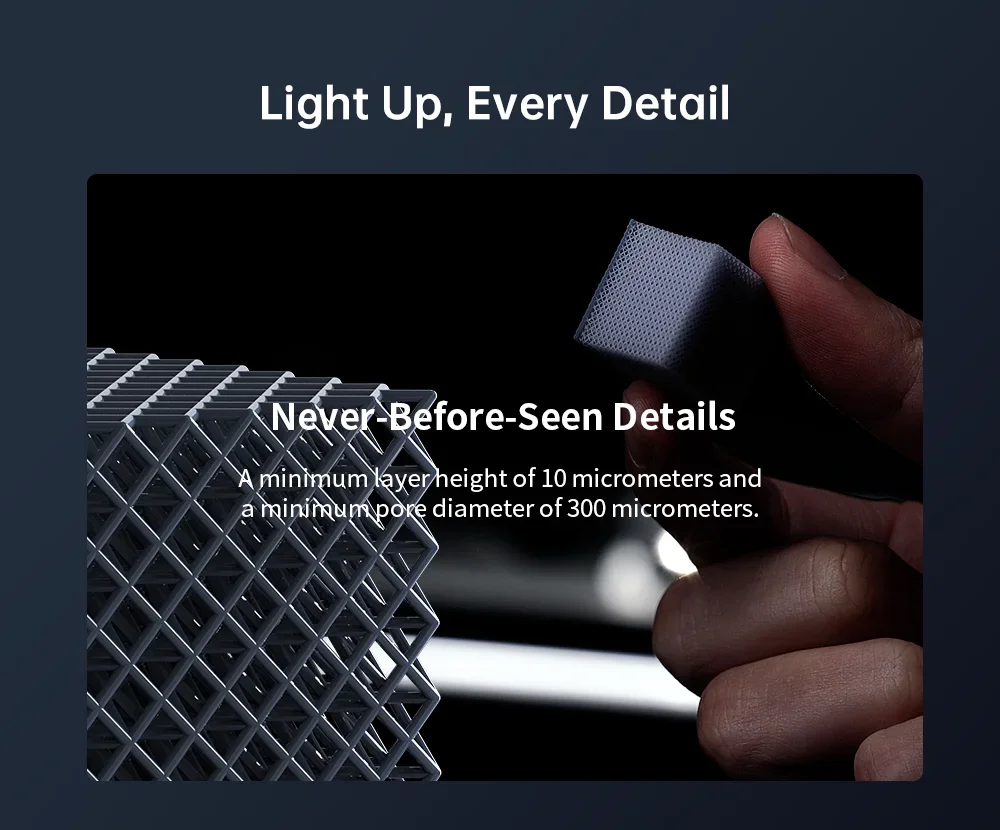 Equipped with a light-off compensation algorithm, it can dynamically adjust the light-off time of the under-screen light source according to the exposure area of the printing model and the resin flow rate, ensuring that each layer of the model is successfully exposed and detached, improving the printing success rate.