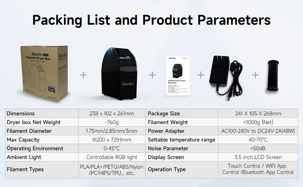 GratKit Firefly Filament Dryer Box Keeping Filament Dry Holder 360° Surround Heating Tuya APP Controlled 3D Printer Tools Part