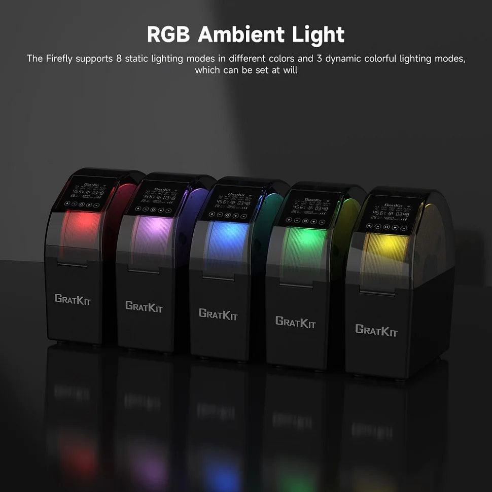 RGB ambient light allows you to check the remaining filament at any time at night. The multi-color matching makes your printing no longer boring and makes your device cooler.