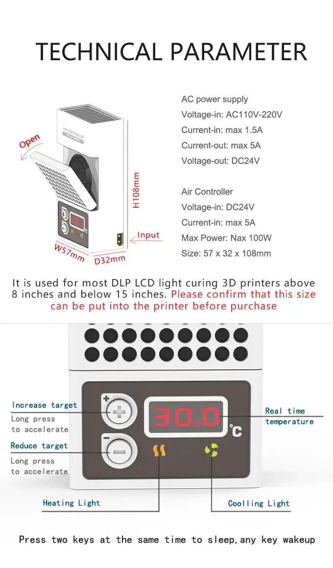【Professional design】Our temperature controller use in cold weather,when temperature lower than 75F/24C, will cause so many problems in LCD DLP 3D print. Such as Print not sticking to the bed, Layer adhesion, warming, and so on. Finally, printing fails. Our heater can rise temperature fast.