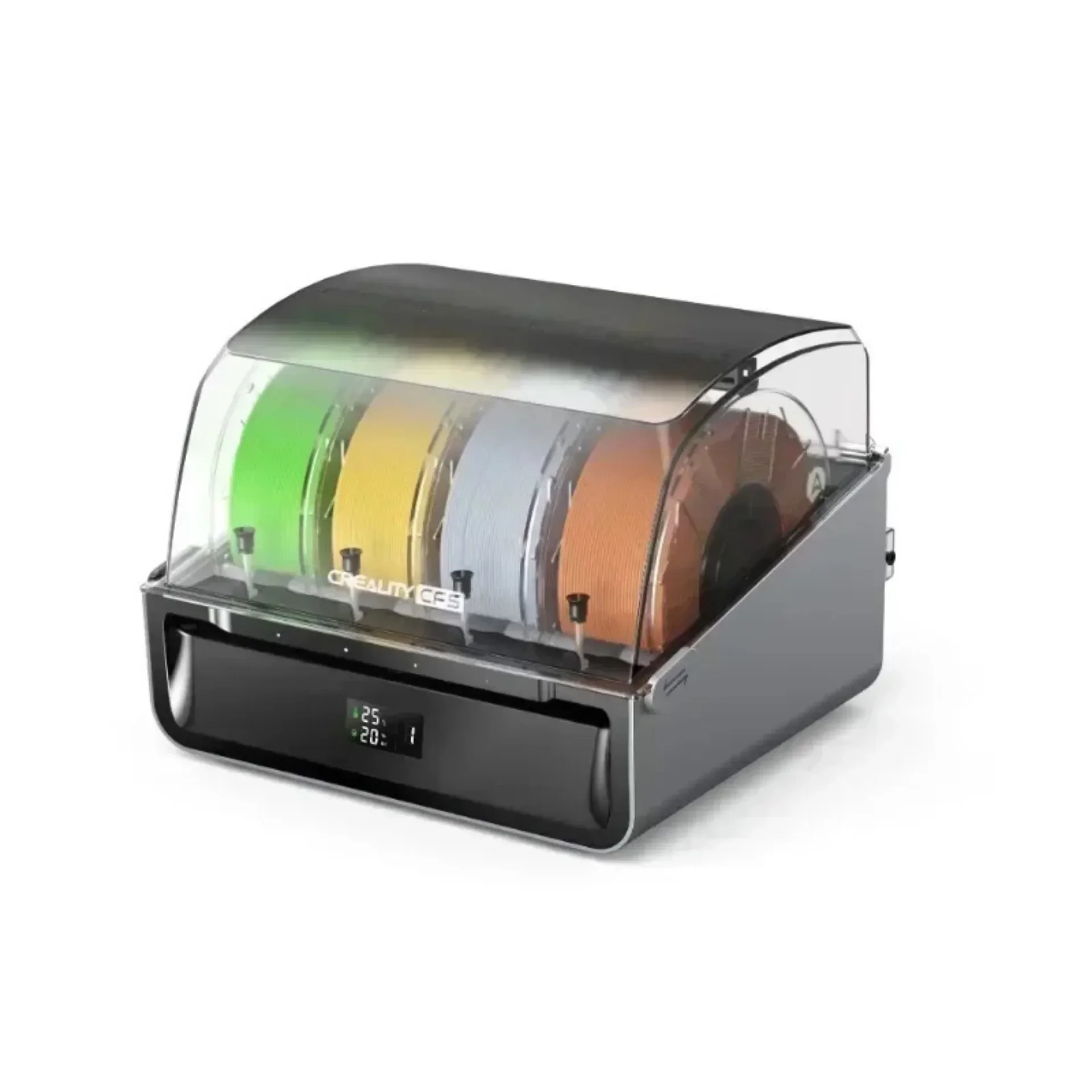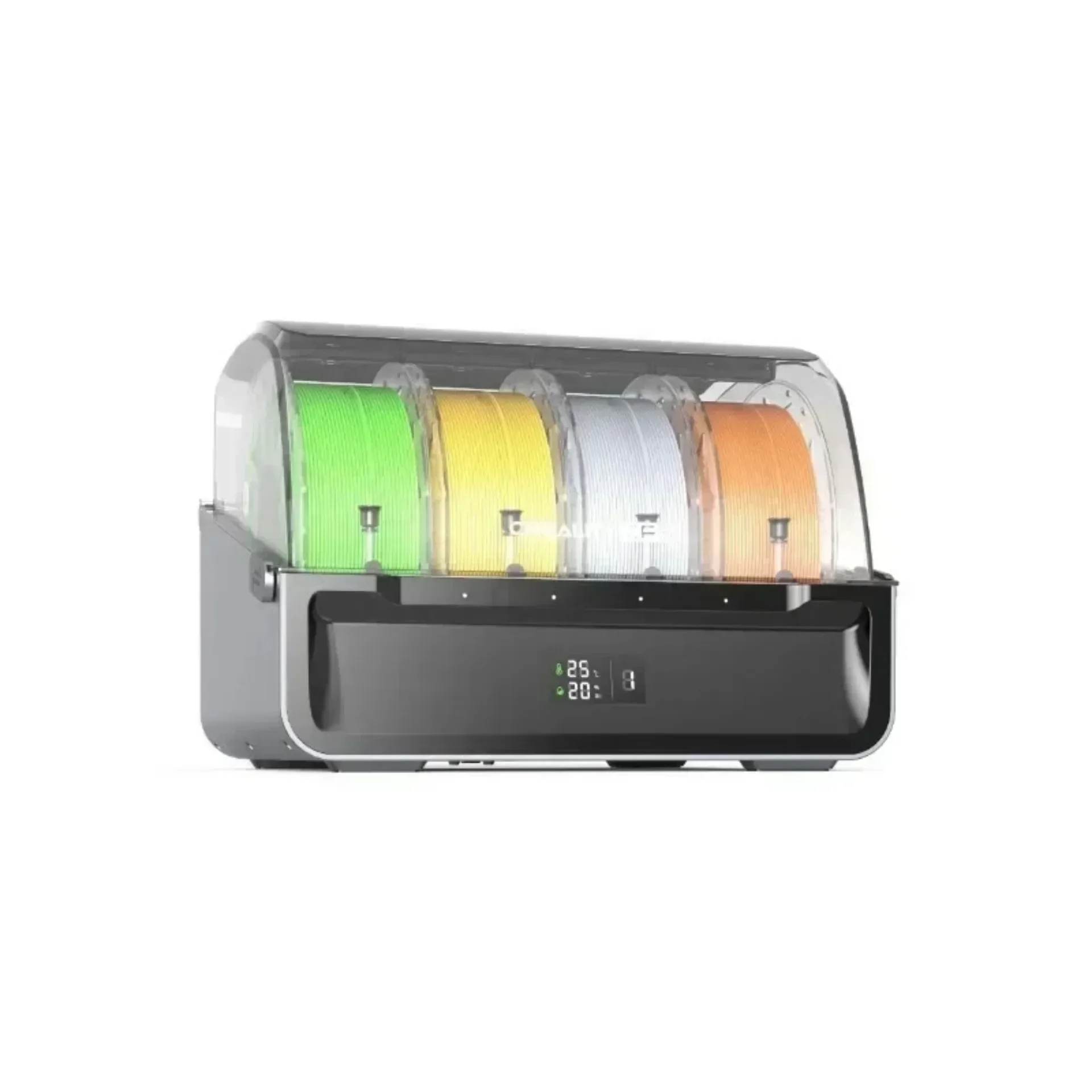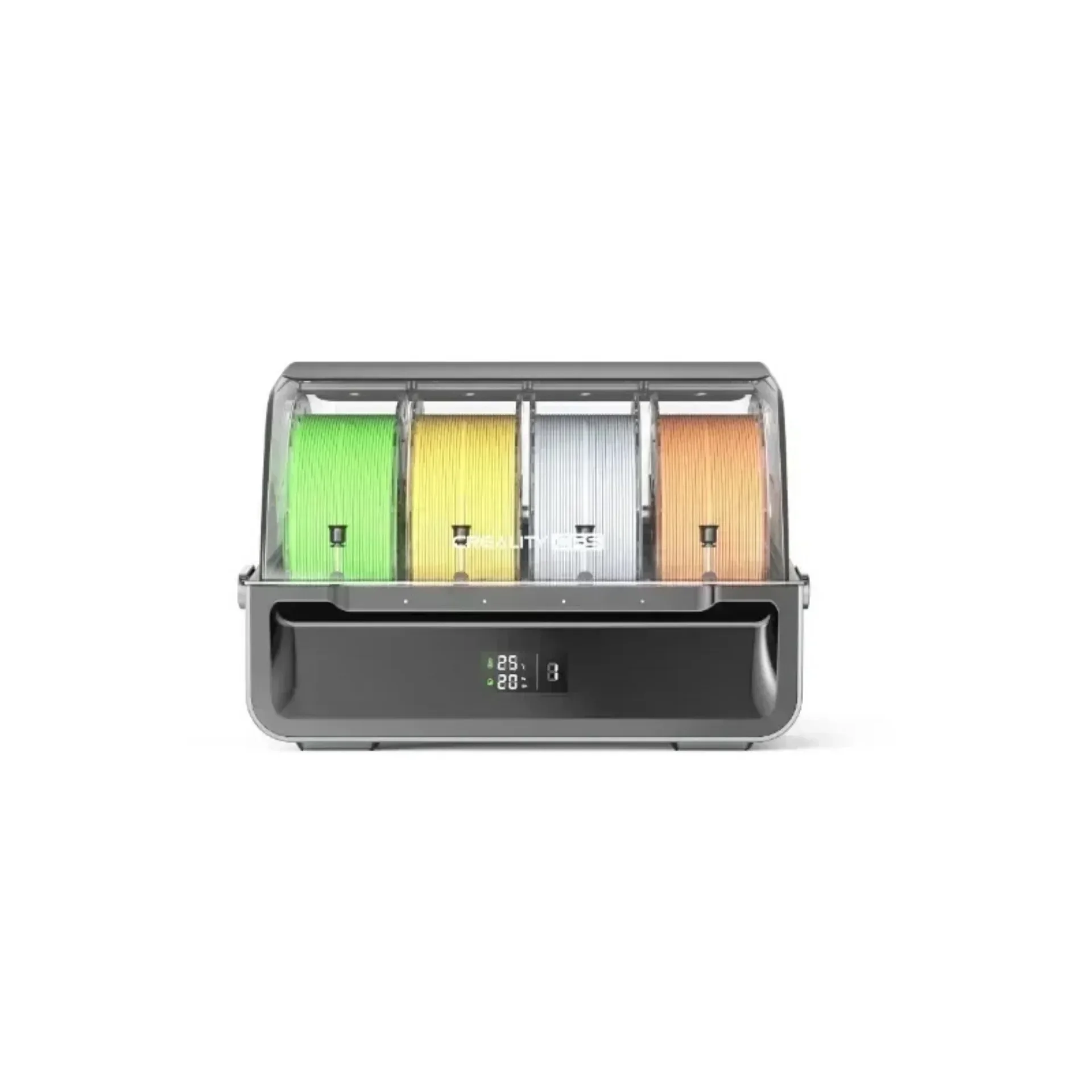 The airtight design keeps the filaments dry.A display screen indicates the inner temperatureand humidity