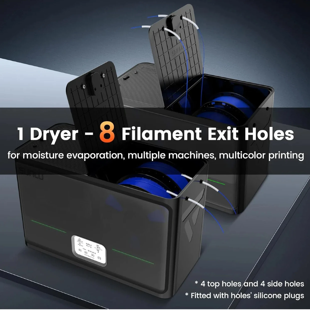 8 Filament Exit Holes: SUNLU filament dryer S4 features eight filament outlets, ideal for multiple printers and various filament loading angles, smoother loading and printing.