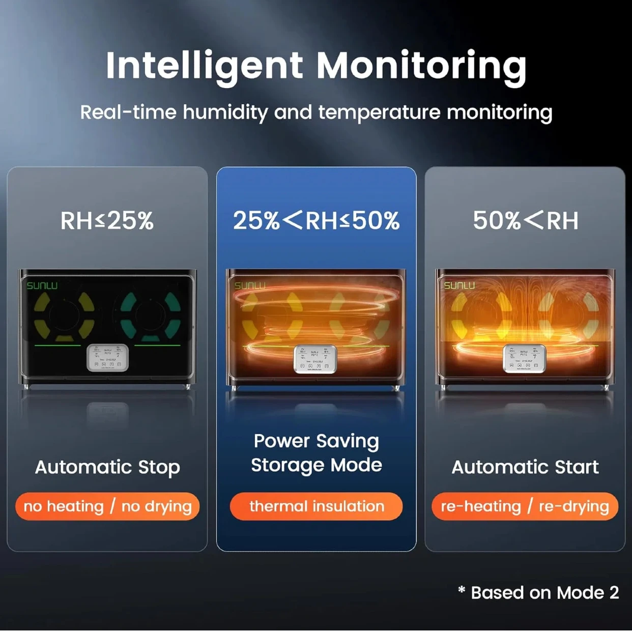 350W PTC Heater: SUNLU filament dryer S4 is equipped with a 350W PTC heater, offering safety and higher heating efficiency (50% higher than the FilaDryer S2).